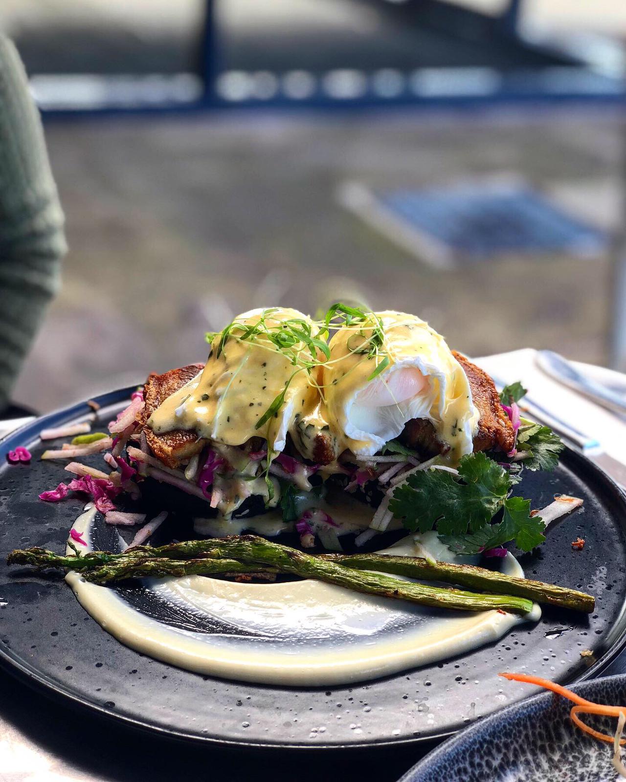 I love pork and everything with pork so our first dish had to be the crackling pork benedict. It didn’t live up to our expectations. The menu sold us a belief that the ‘slow cooked crackling pork’ would be tender and flavourful pork that would melt away in our mouths. Sadly, the pork was tough and didn’t hit the spot for us. The apple slaw was great though and the pair of poached eggs on top became the feature in our egg yolk pop Instagram story.