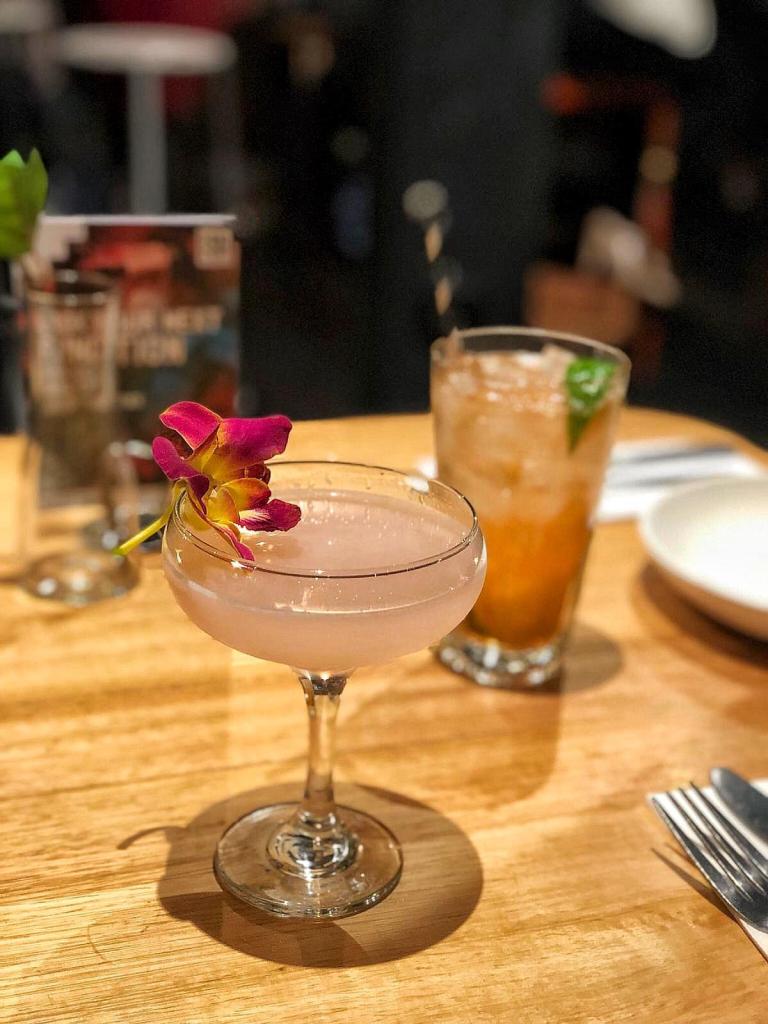 Bacardi white rum, lychee, rose syrup, lime. This one’s a beauty to look at and a treat to taste.